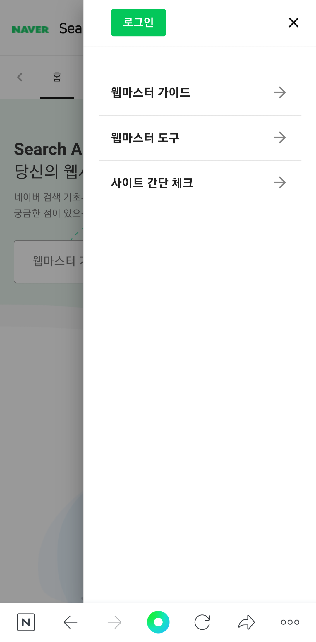 1. 네이버 서치어드바이저 홈페이지 들어가 소유확인 연장을 해야 하는 사이트가 있는 아이디로 로그인을 해주세요.