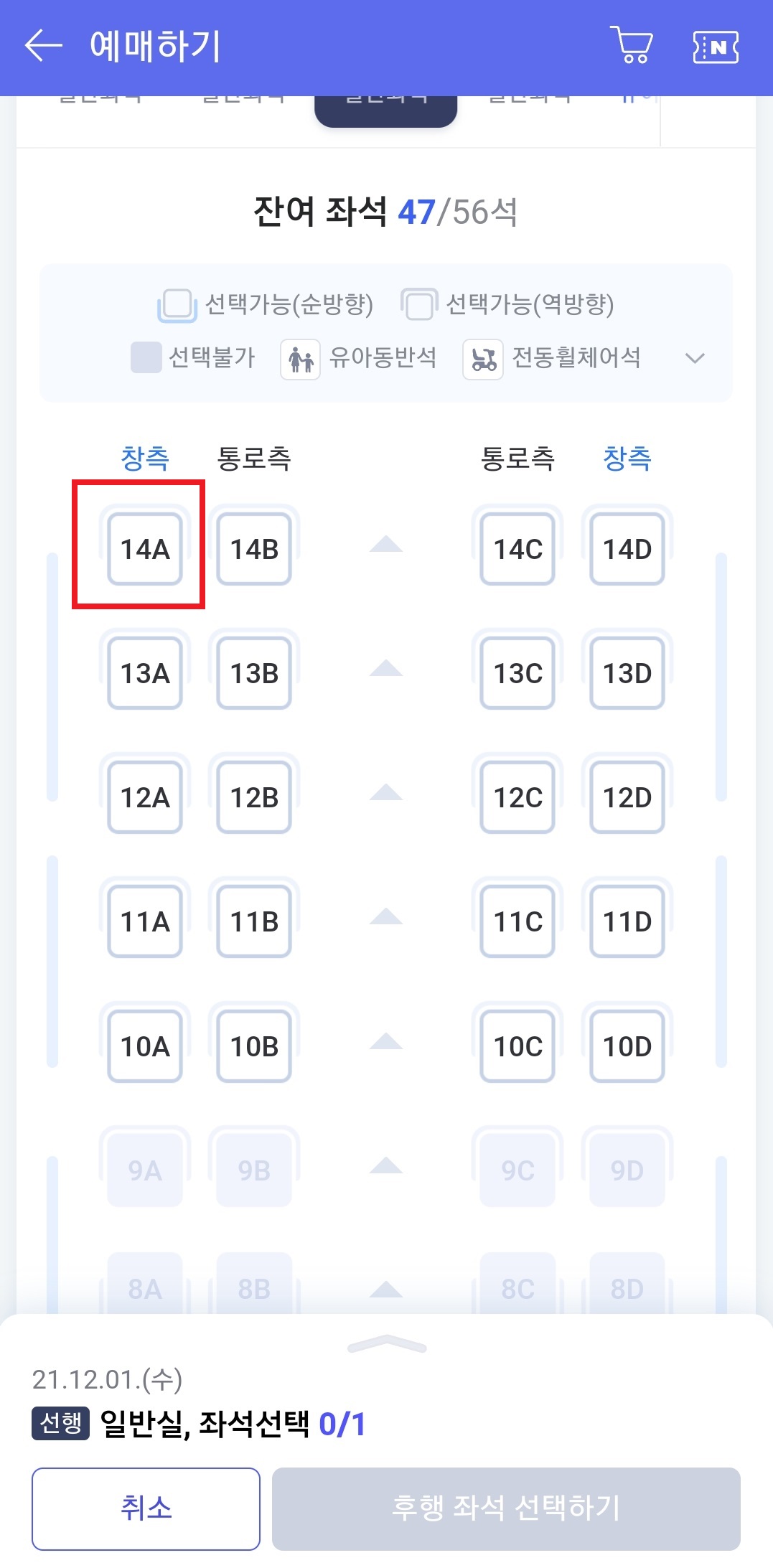 화면을 아래쪽으로 내리면 좌석 선택 창이 나와요.