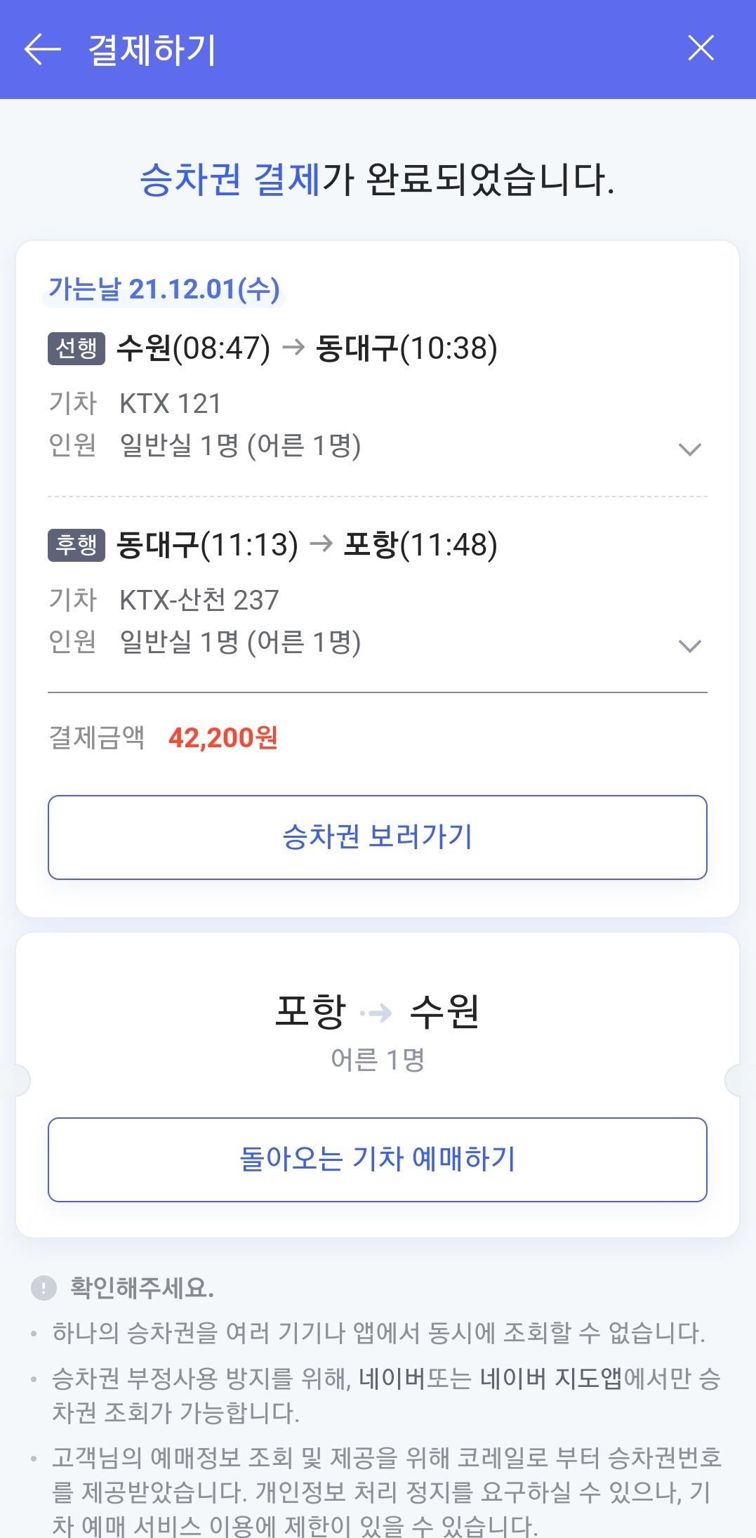 기차표 하면 코레일 어플을 사용했었는데 네이버로도 기차가 예매 가능하더라고요.