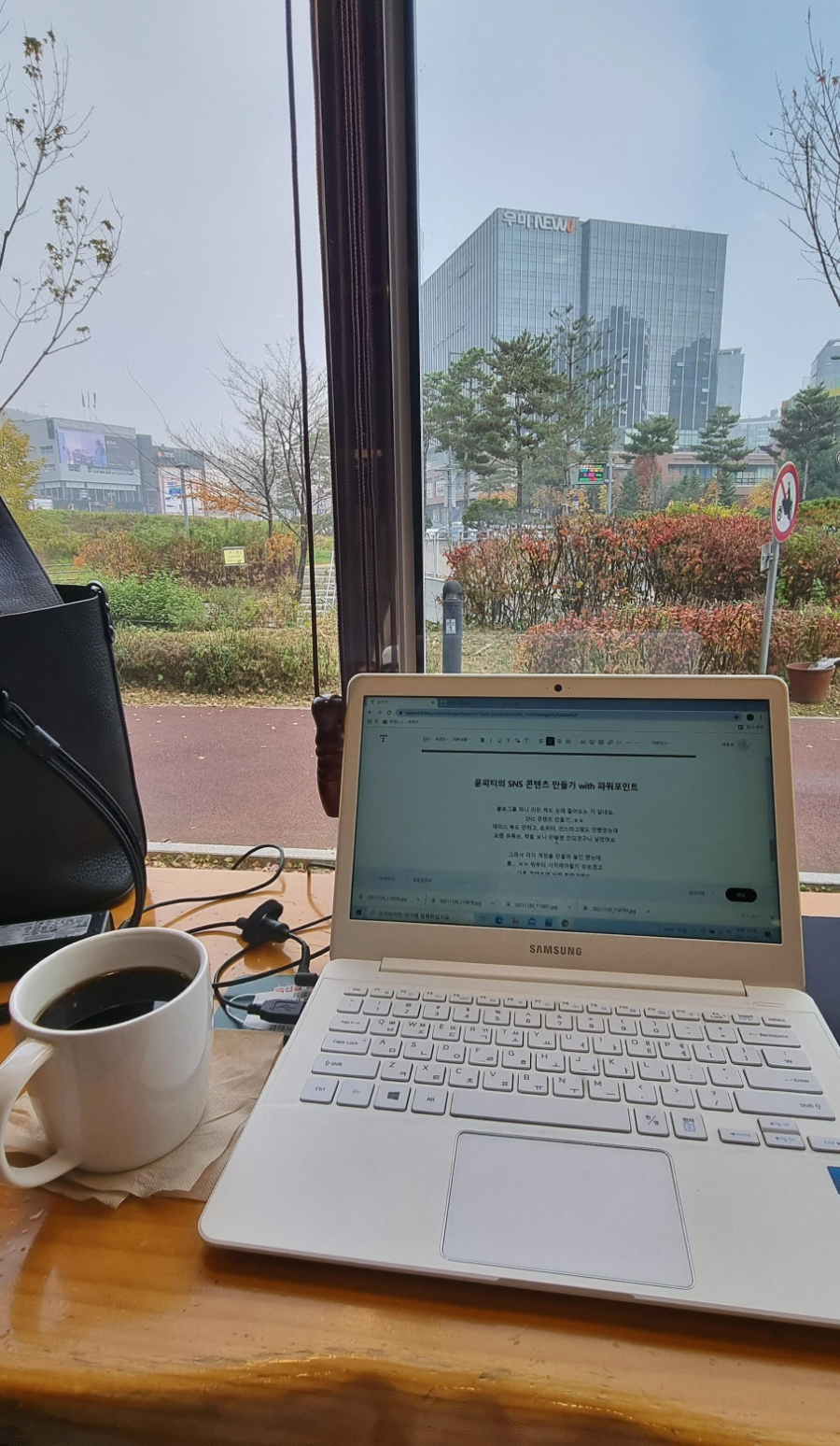카페에서 노트북으로 쓰는 맛이 있네요~