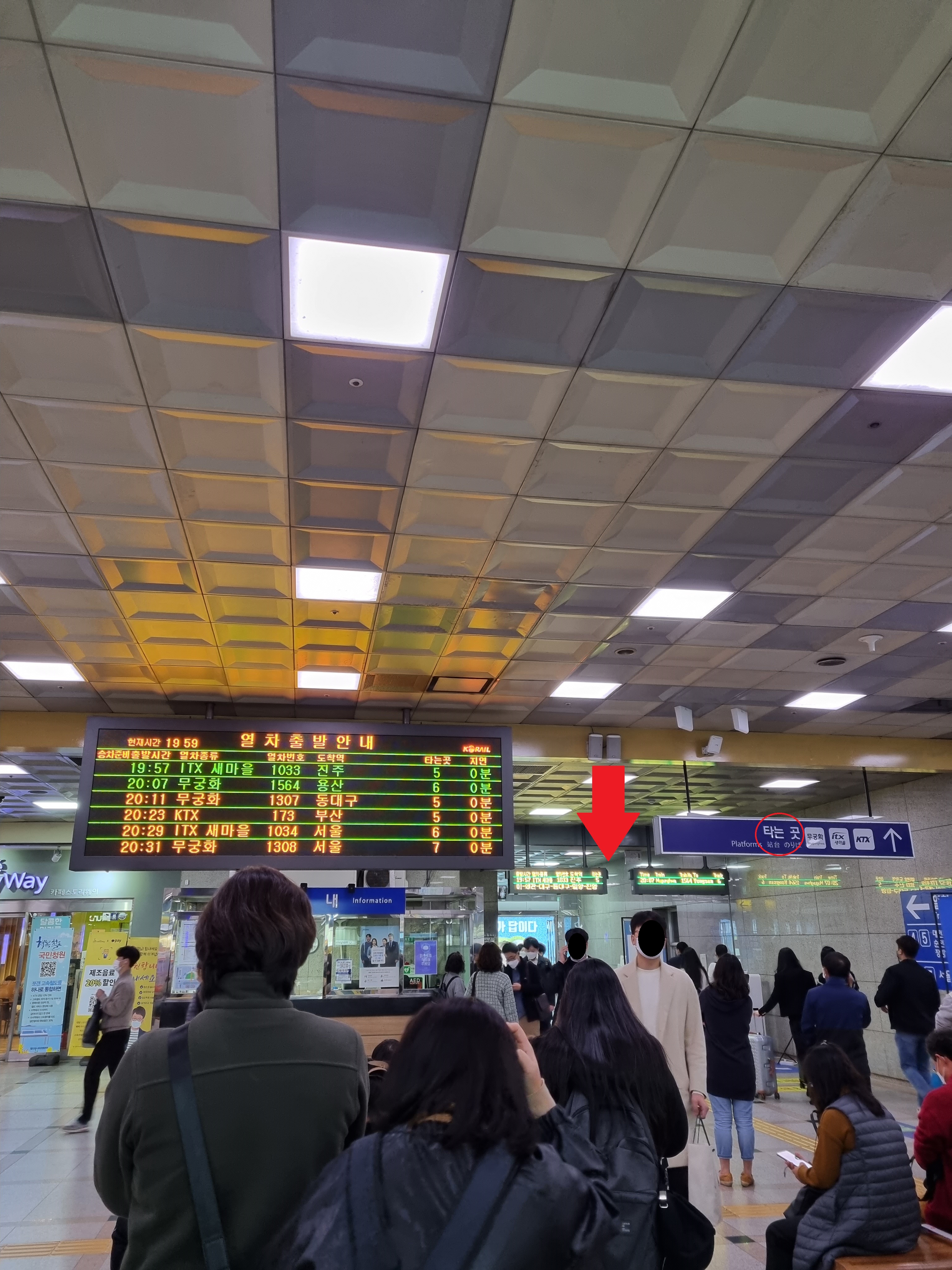 KTX, ITX, 무궁화열차는 오른쪽 빨간 화살표 표시 있는 곳이 타는 곳입니다^^