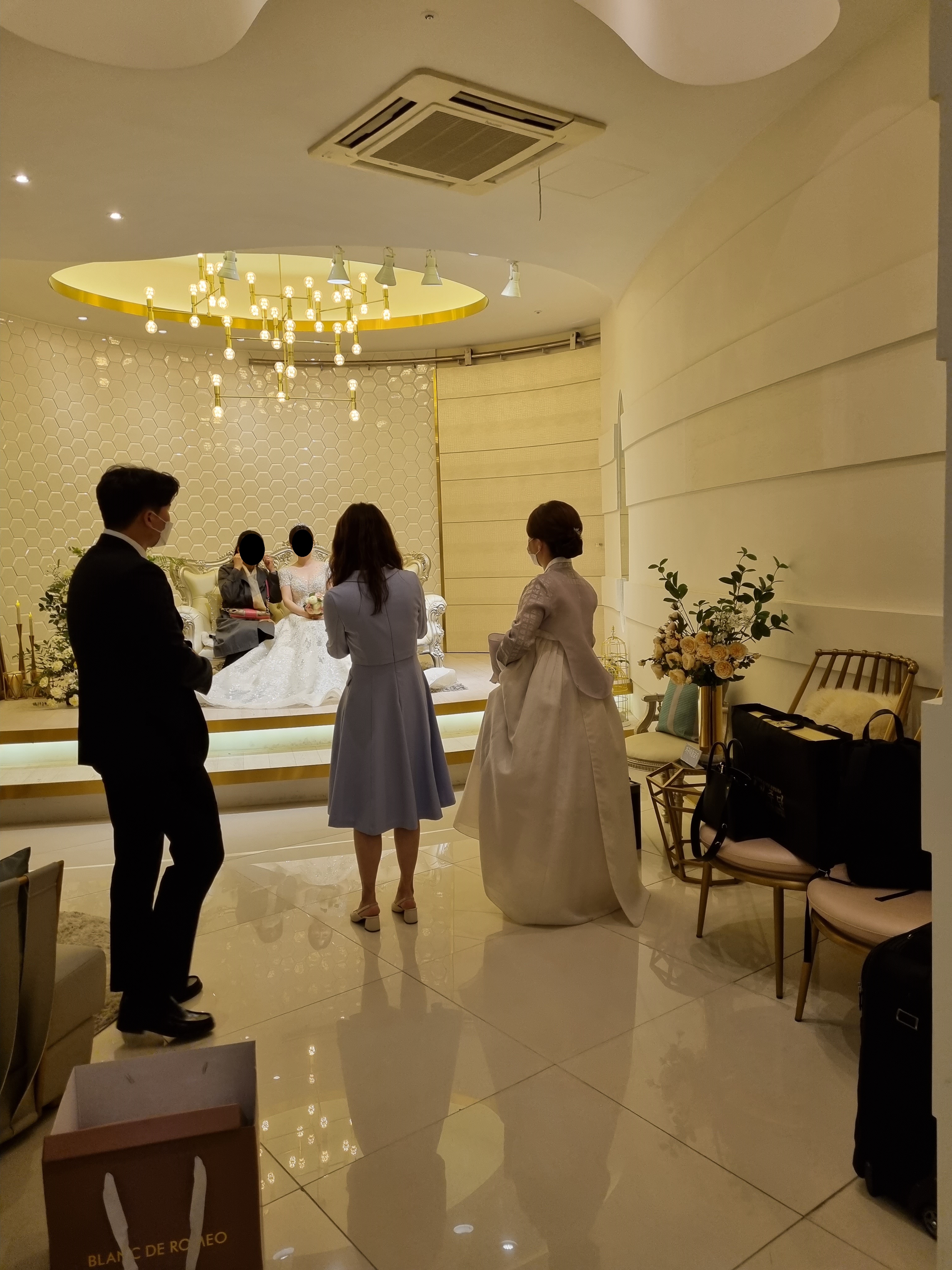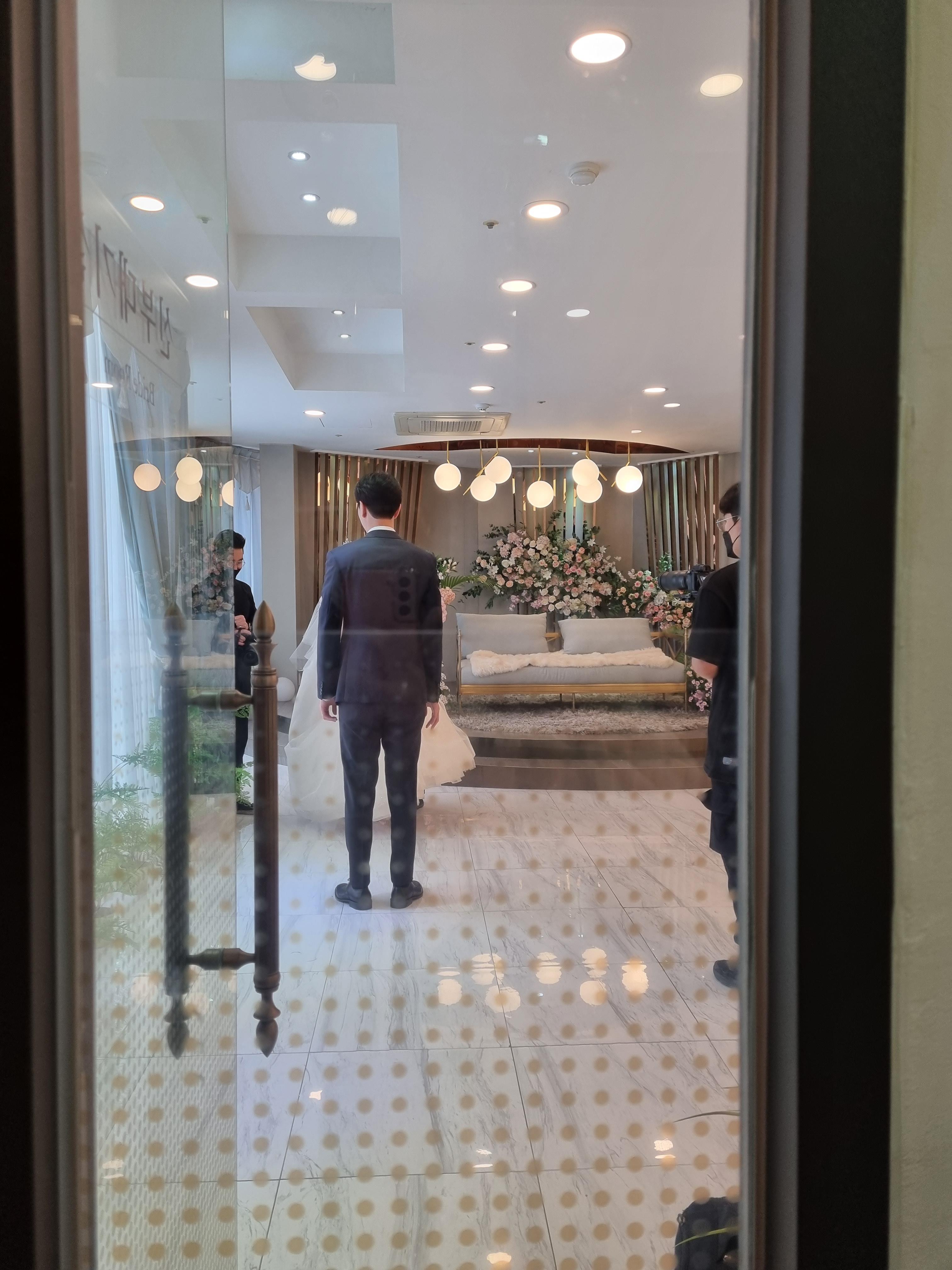 하객들에게 인사하고 계단으로 같이 내려오더라고요.