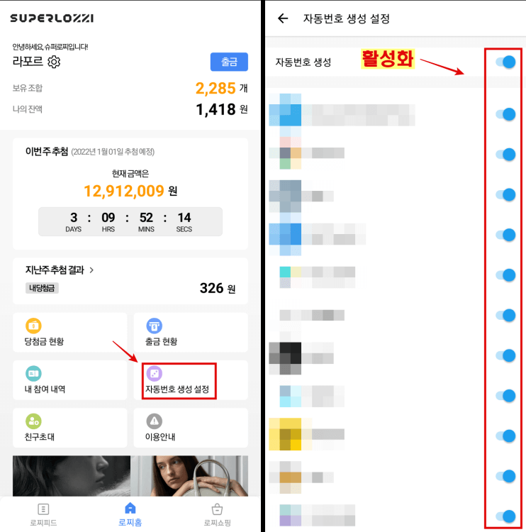 슈퍼로찌 홈 화면에서 자동번호 생성 설정을 클릭해주세요.