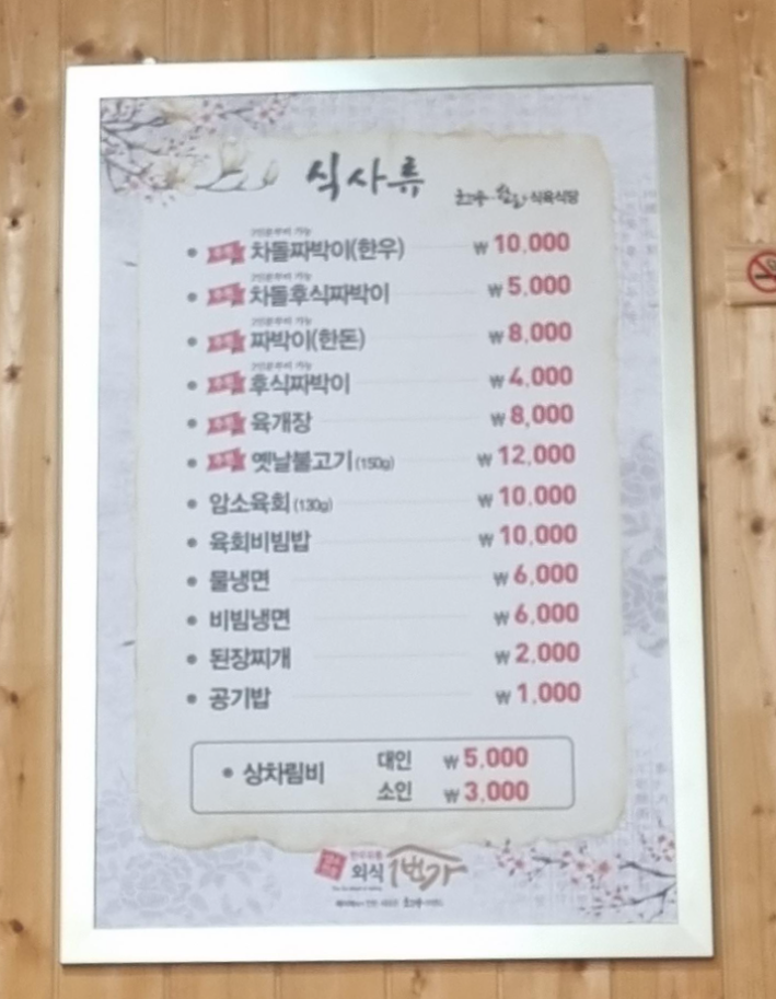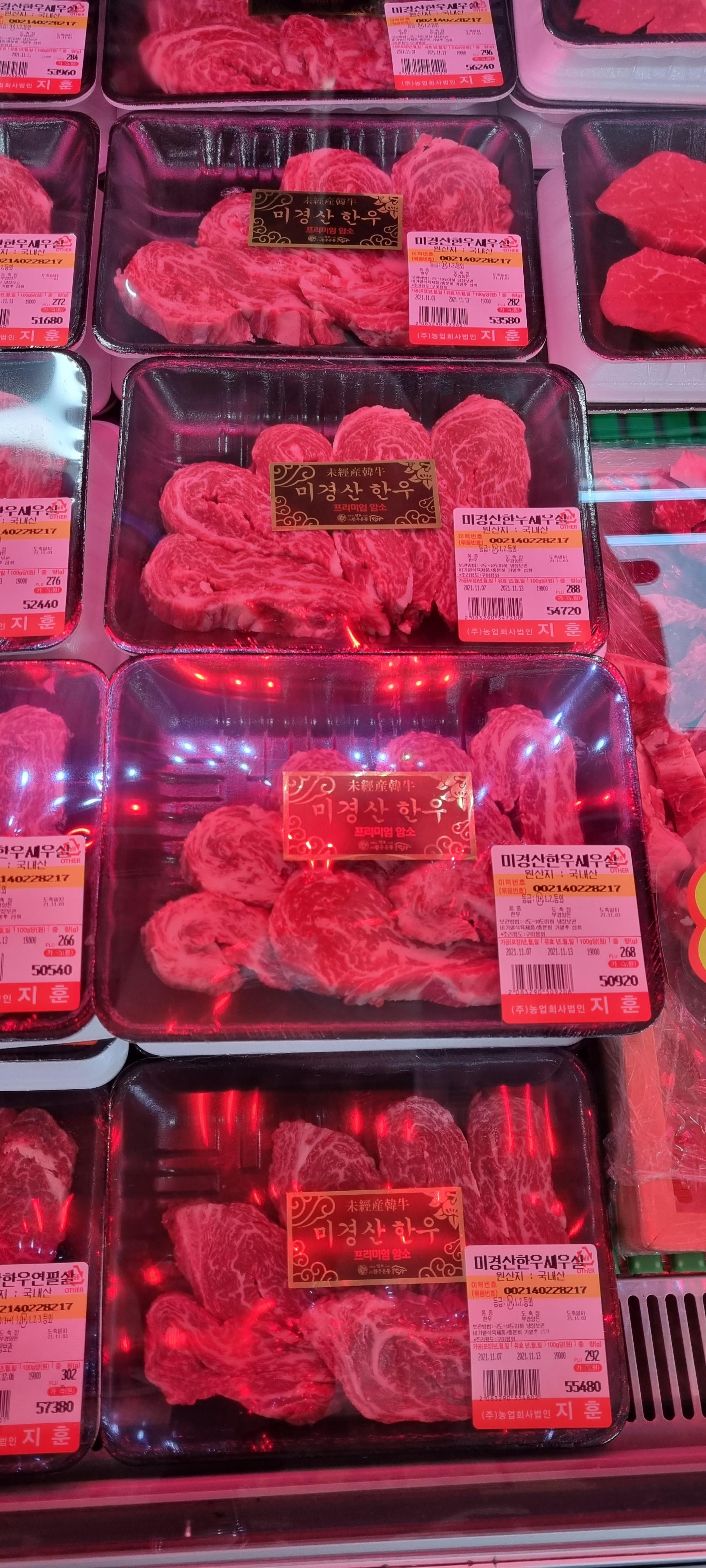 사진으로 고기 가격이 잘 보이나 모르겠지만