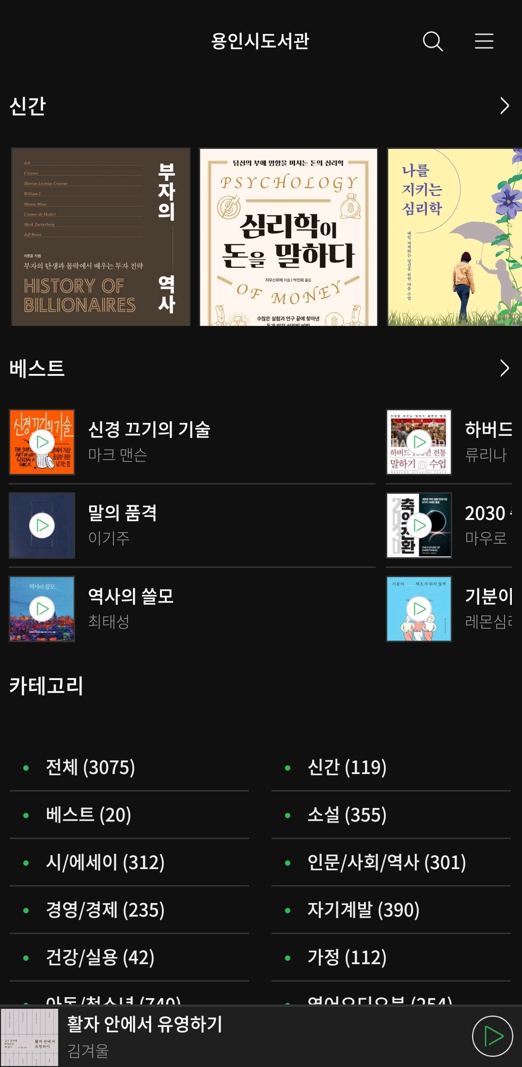 오디오 북은 용인시 도서관 외 다른 도서관도 이용 가능해요.