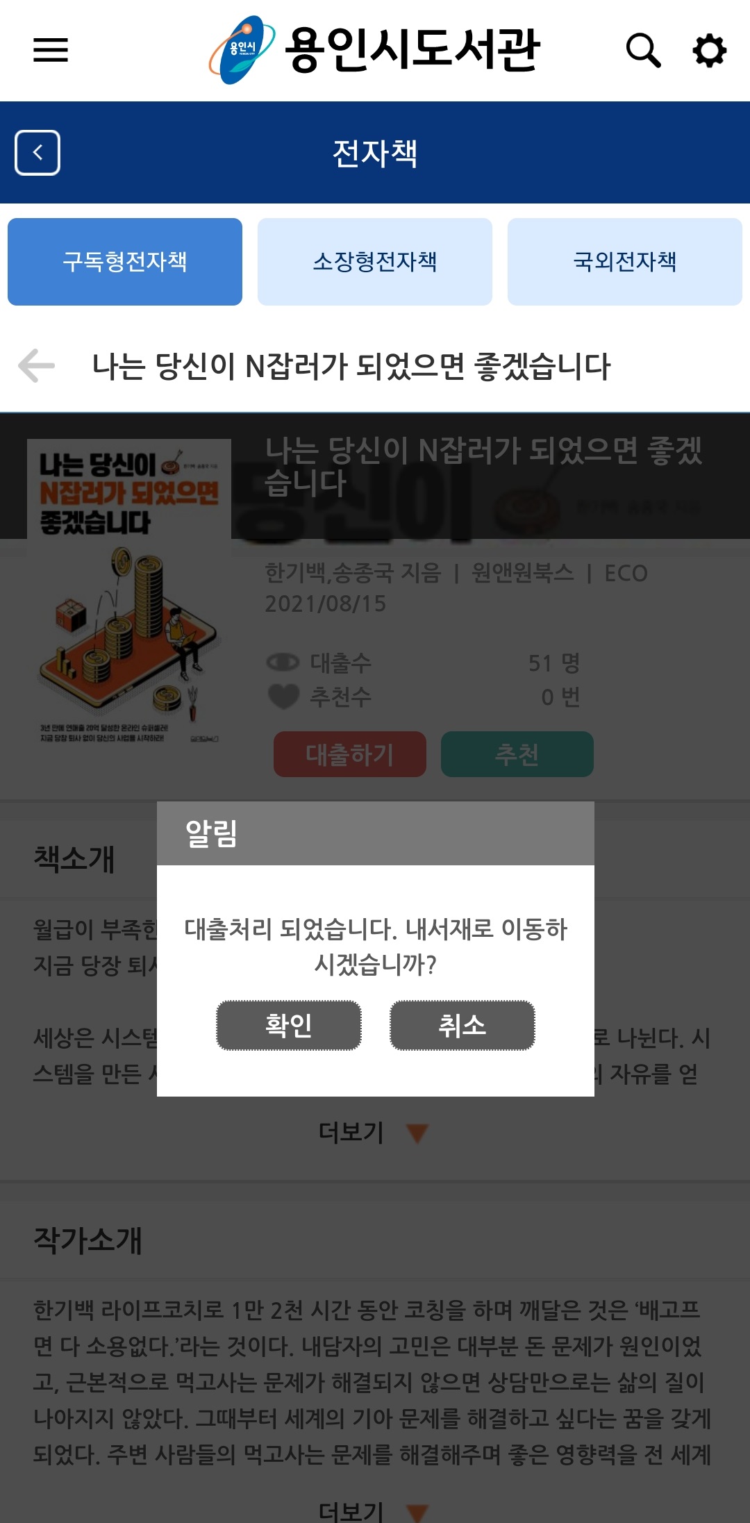 원하는 도서를 클릭하시고 대출하기를 누르면 내 서재에서 볼 수 있습니다.