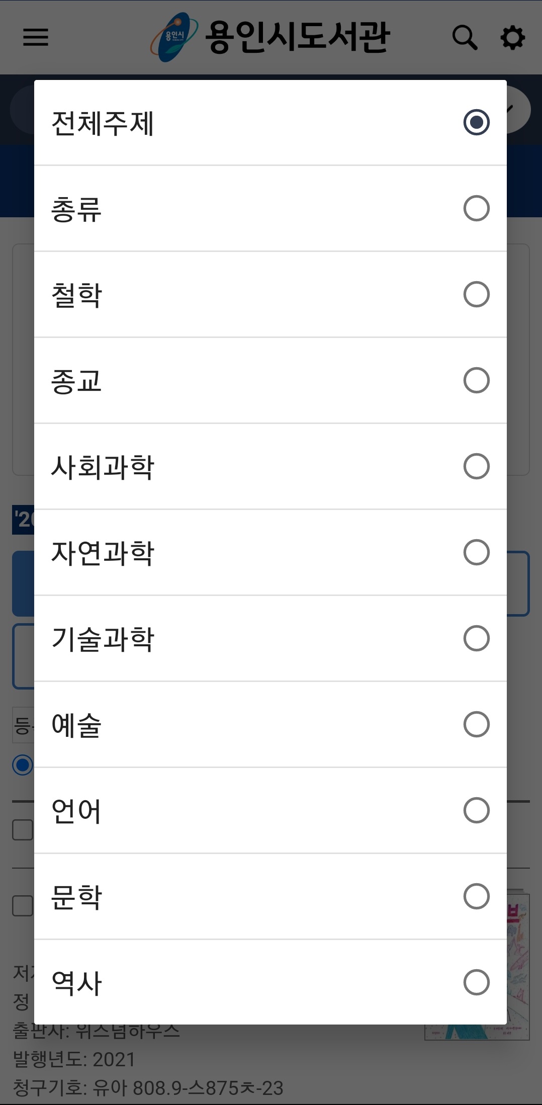 자료검색은 내가 주로 가는 도서관만 선택할 수 있고 전체 도서관을 선택해서도 가능해요.
