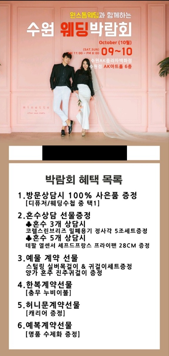 결론은 웨딩 박람회 방문 전에 미리 사전에 충분히 조사해보고 가기(가격, 디자인 등등), 계약금 압박이 있는데 정말 내키지 않으면 무시하기(생각하니 다시 가보는 것도 일임.)