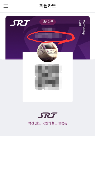 3. 이름 밑 숫자 SRT 10자리가 회원번호입니다.