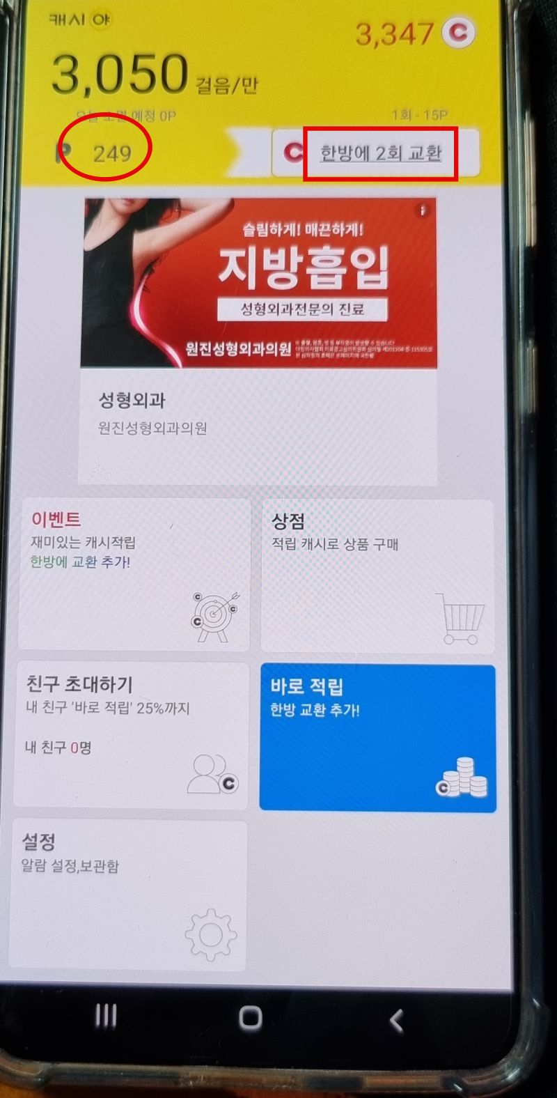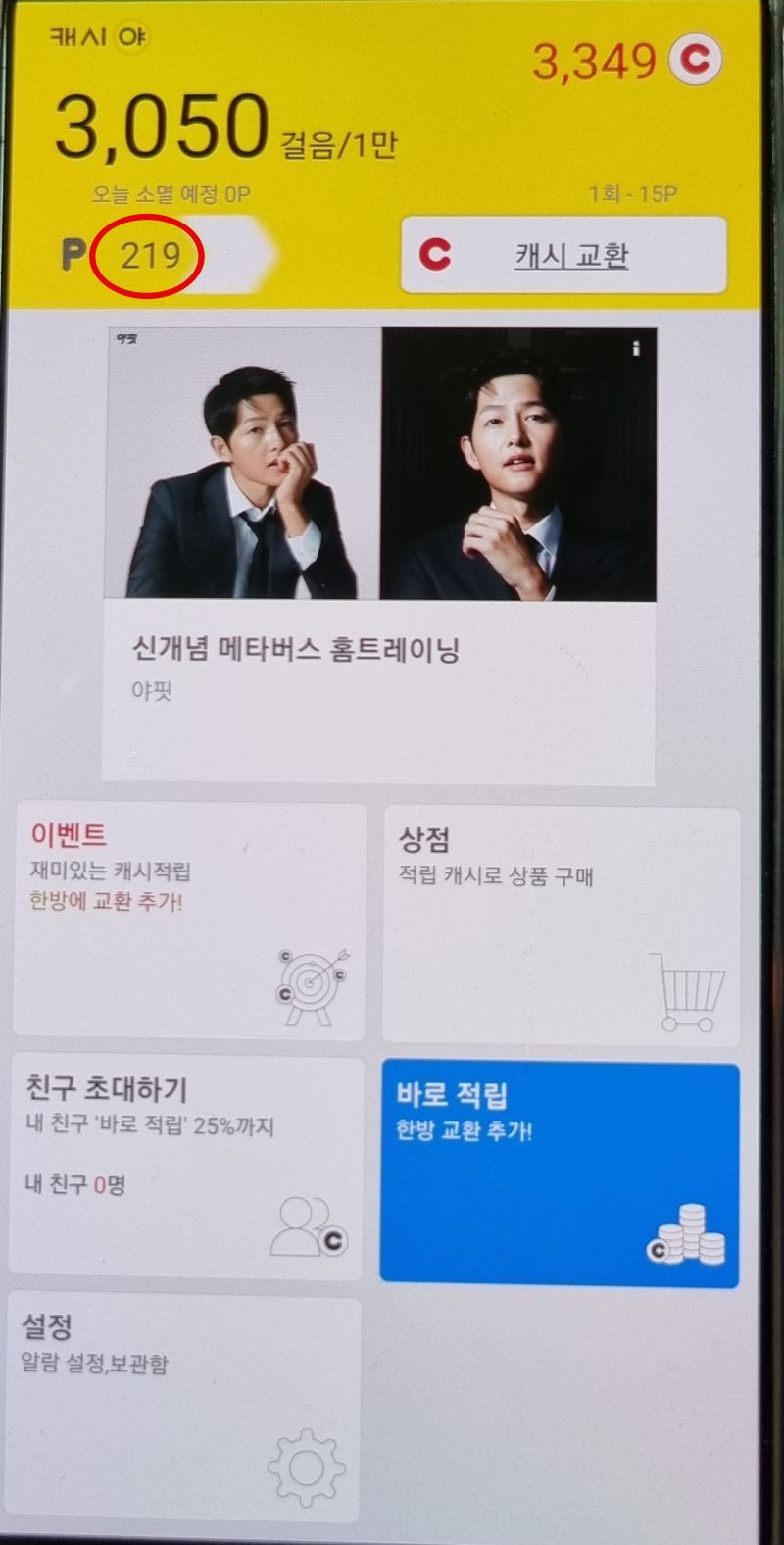 그래서 '한방에' 1회당 그동안 가지고 있던 몇백 포인트가 다 캐시로 적립되는 것인 줄 알았는데 1회당 15 포인트만 가능한 기능이었습니다.