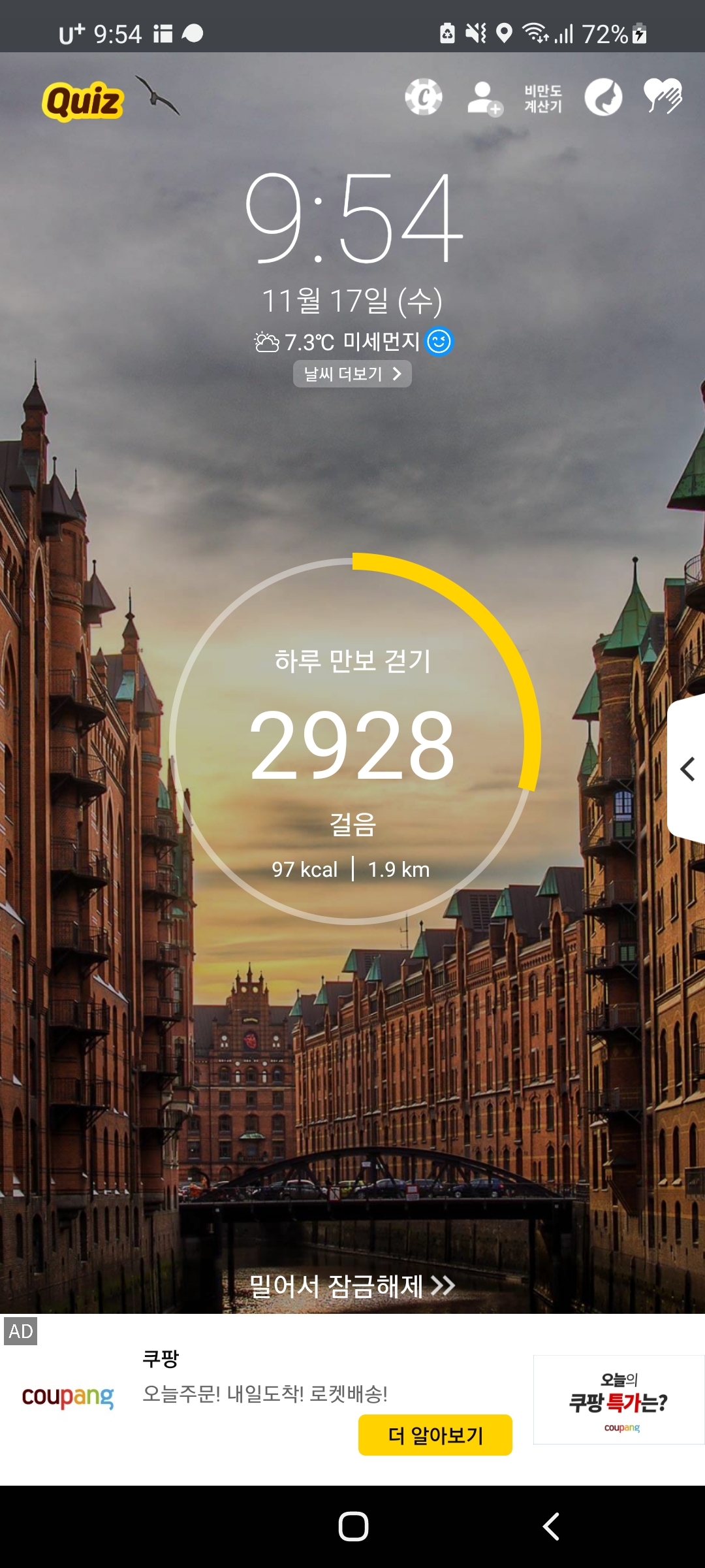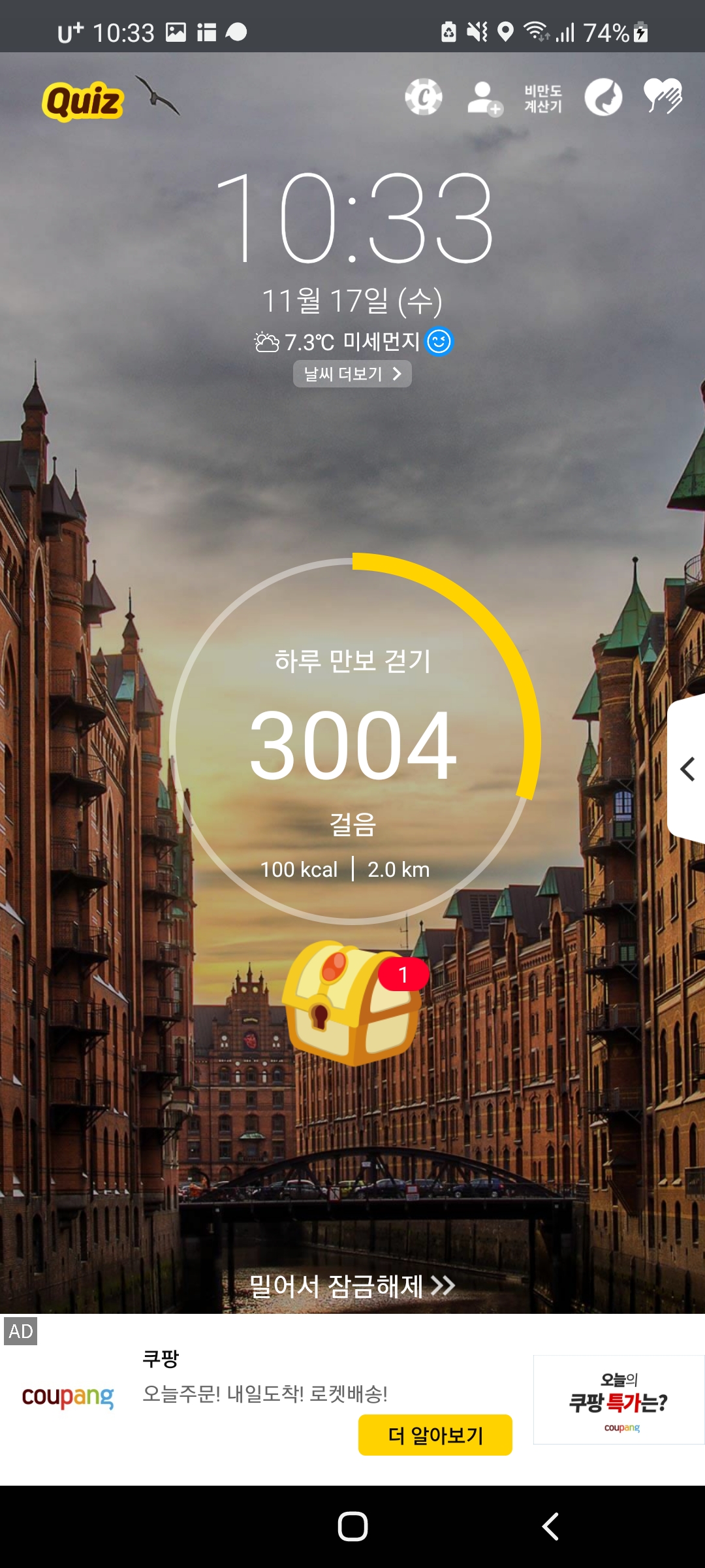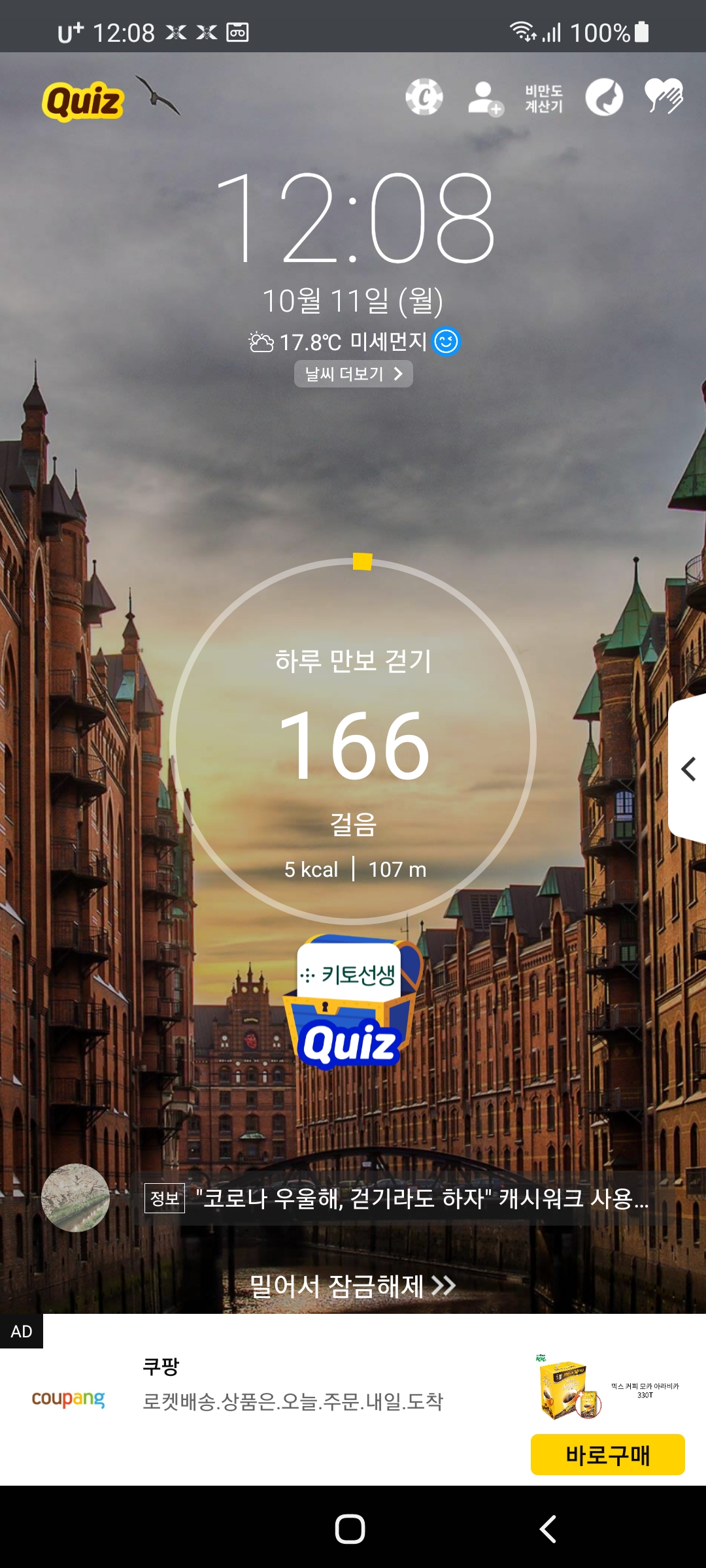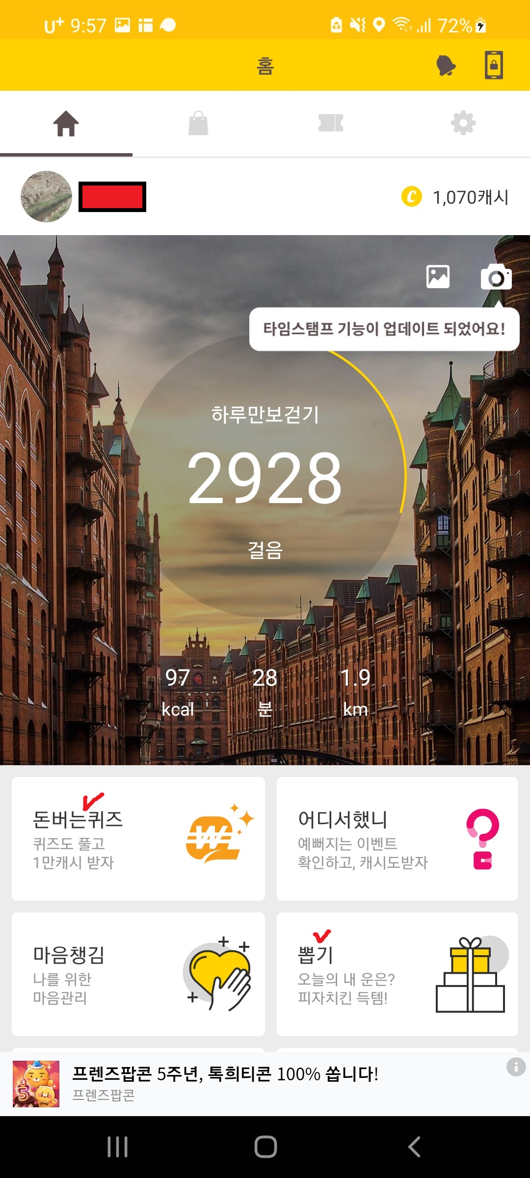캐시워크는 걸음수, 퀴즈 풀기를 통해