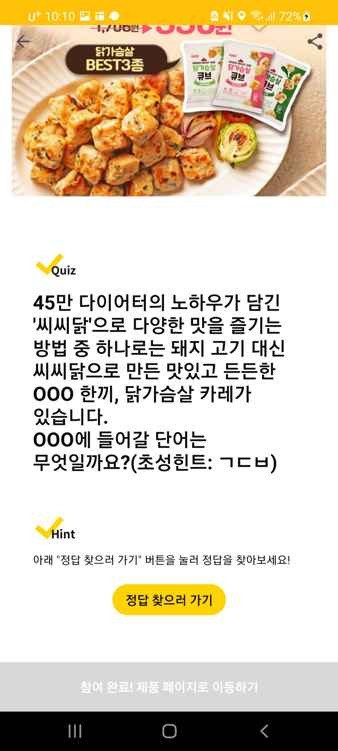 2. 클릭하시면 중간 사진처럼 퀴즈가 나옵니다. 퀴즈는 대부분 빈칸 맞추기입니다.