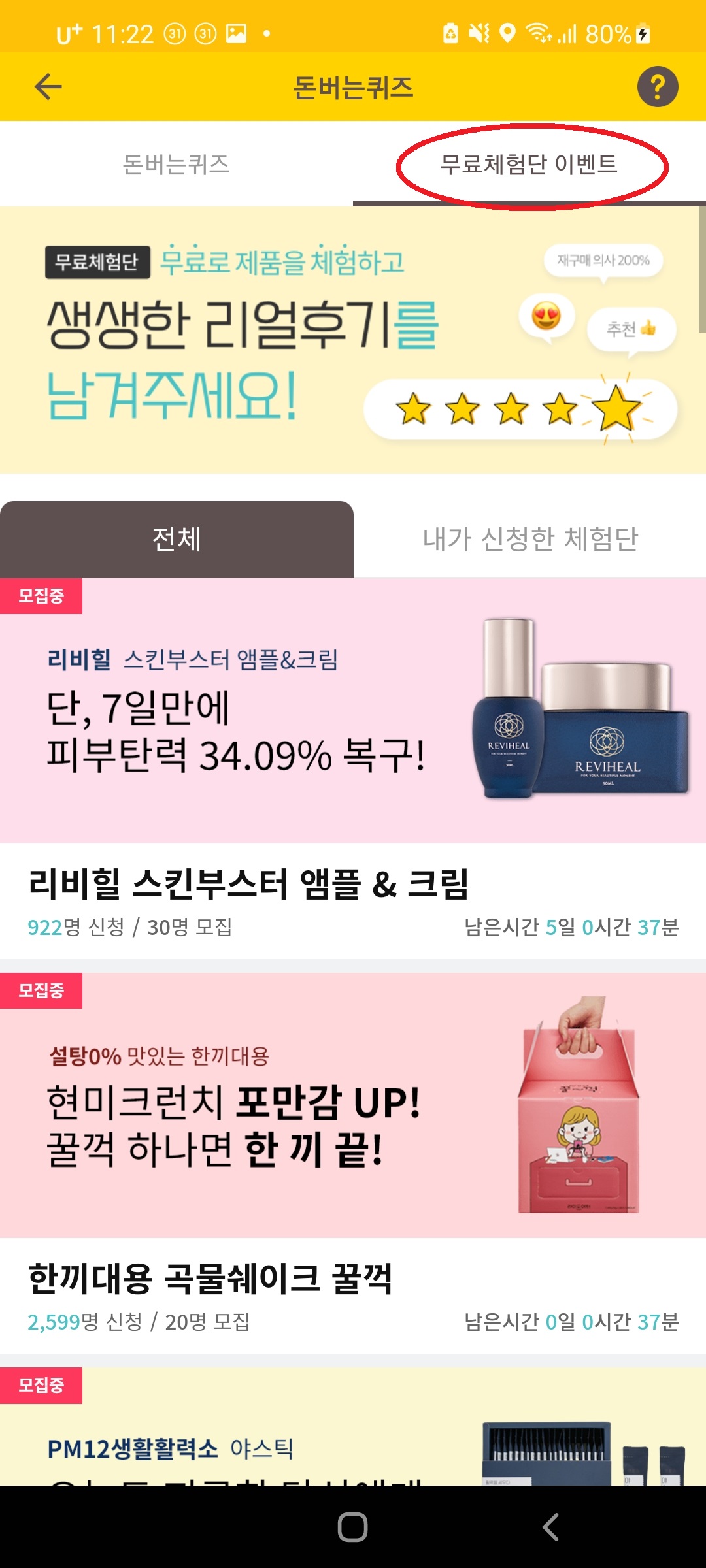 가시면 무료 체험단을 할 수 있는 목록이 떠요.