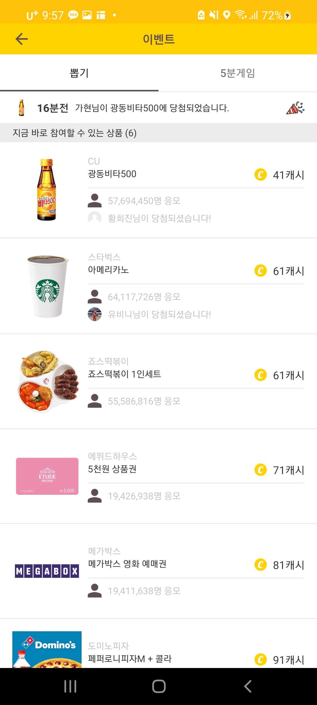 스타벅스 아메리카노가 원래는 5740 캐시인데 여기선 61 캐시로 뽑을 수 있으니까요..