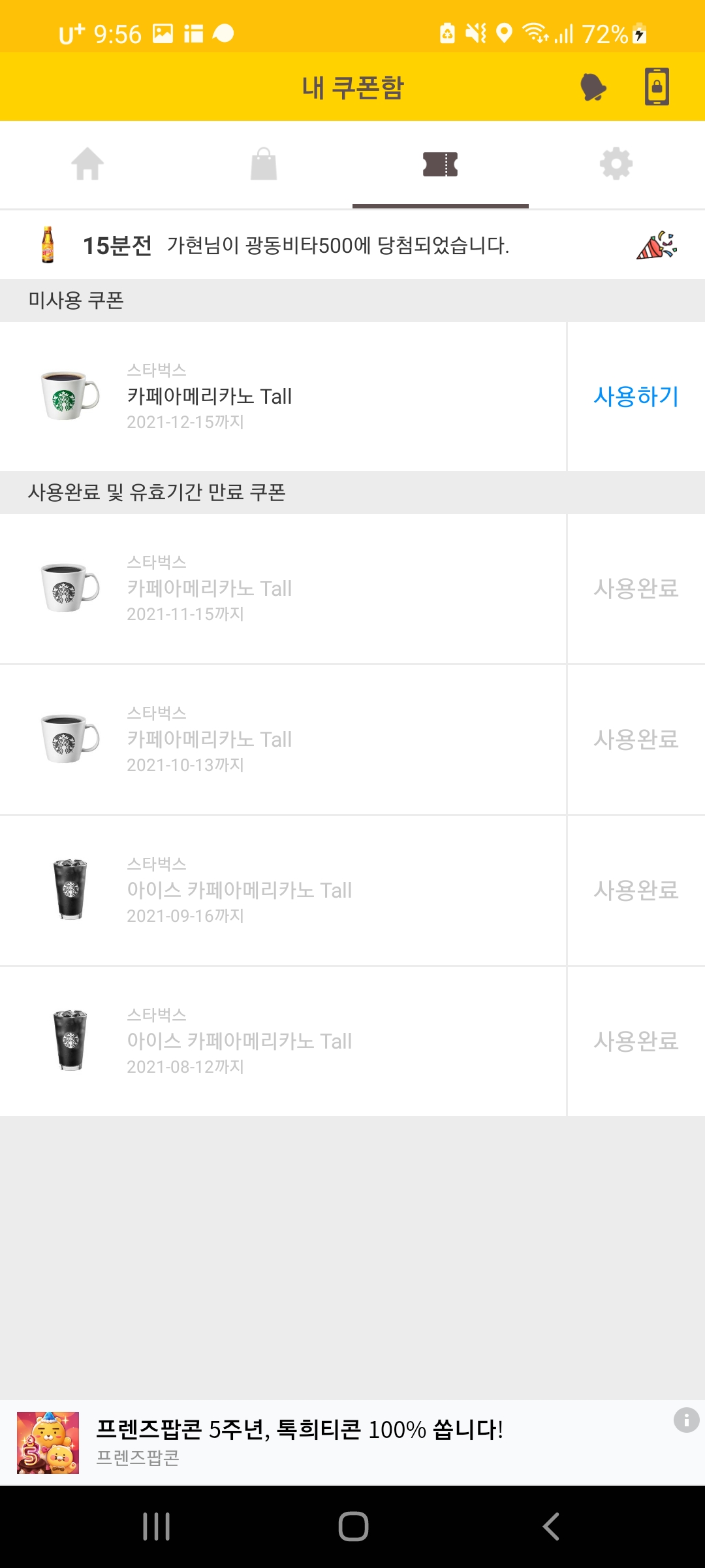 (저는 한 달에 한번 스타벅스 아메리카노를 교환했었네요 ^^)