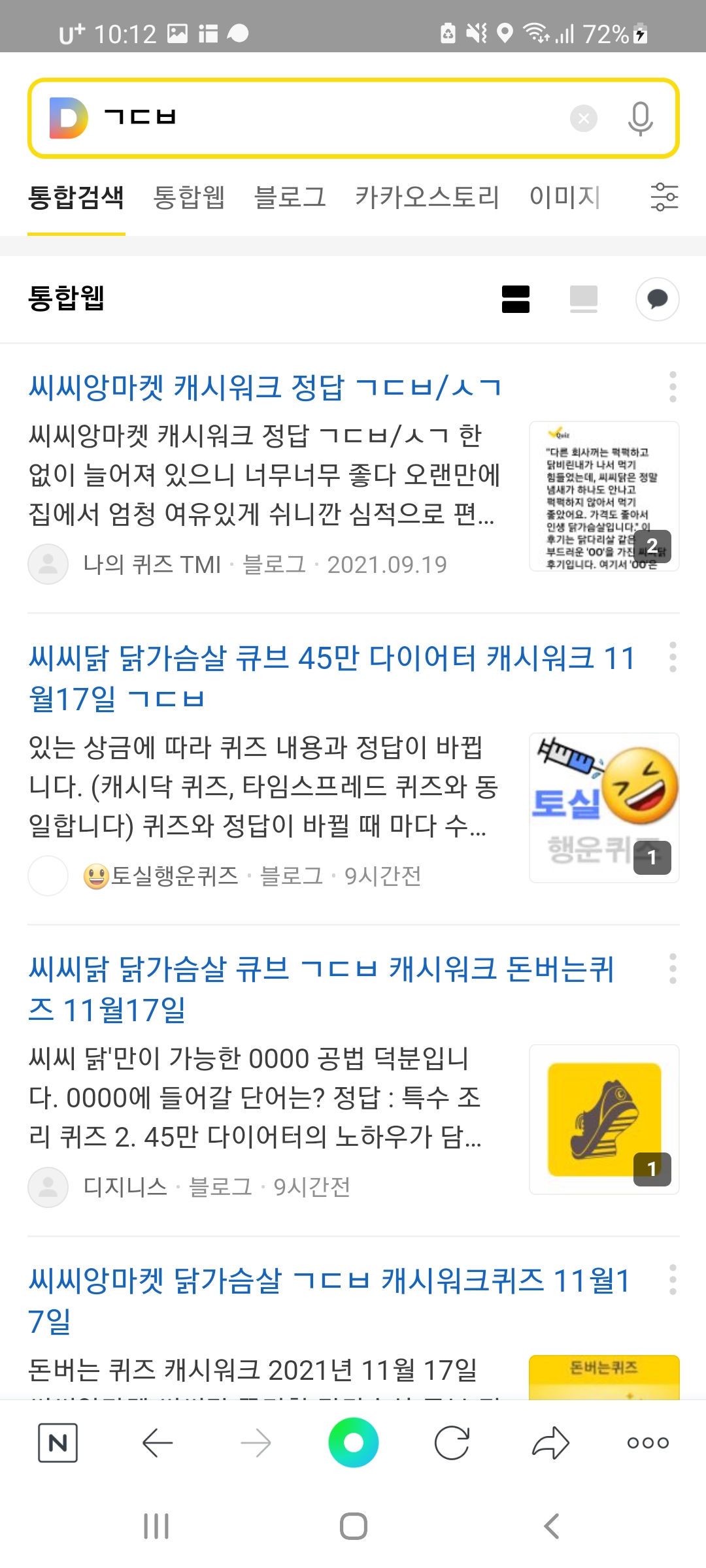 검색창에 초성 힌트 글자나, 캐시 워크 정답으로 검색하시면
