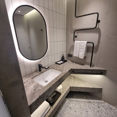 가져온 세면도구들을 놓기 충분했고 건식으로