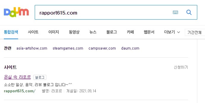 Daum에 제 블로그 주소를 검색하니 사이트에 제 블로그가 검색이 안됐어요.