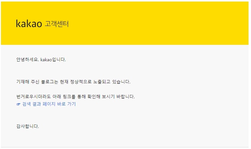 - 문의 내용 : daum에 블로그 주소를 검색하니 안 나온다는 식으로 문의글 작성했습니다. 블로그 주소도 남겨주세요~
