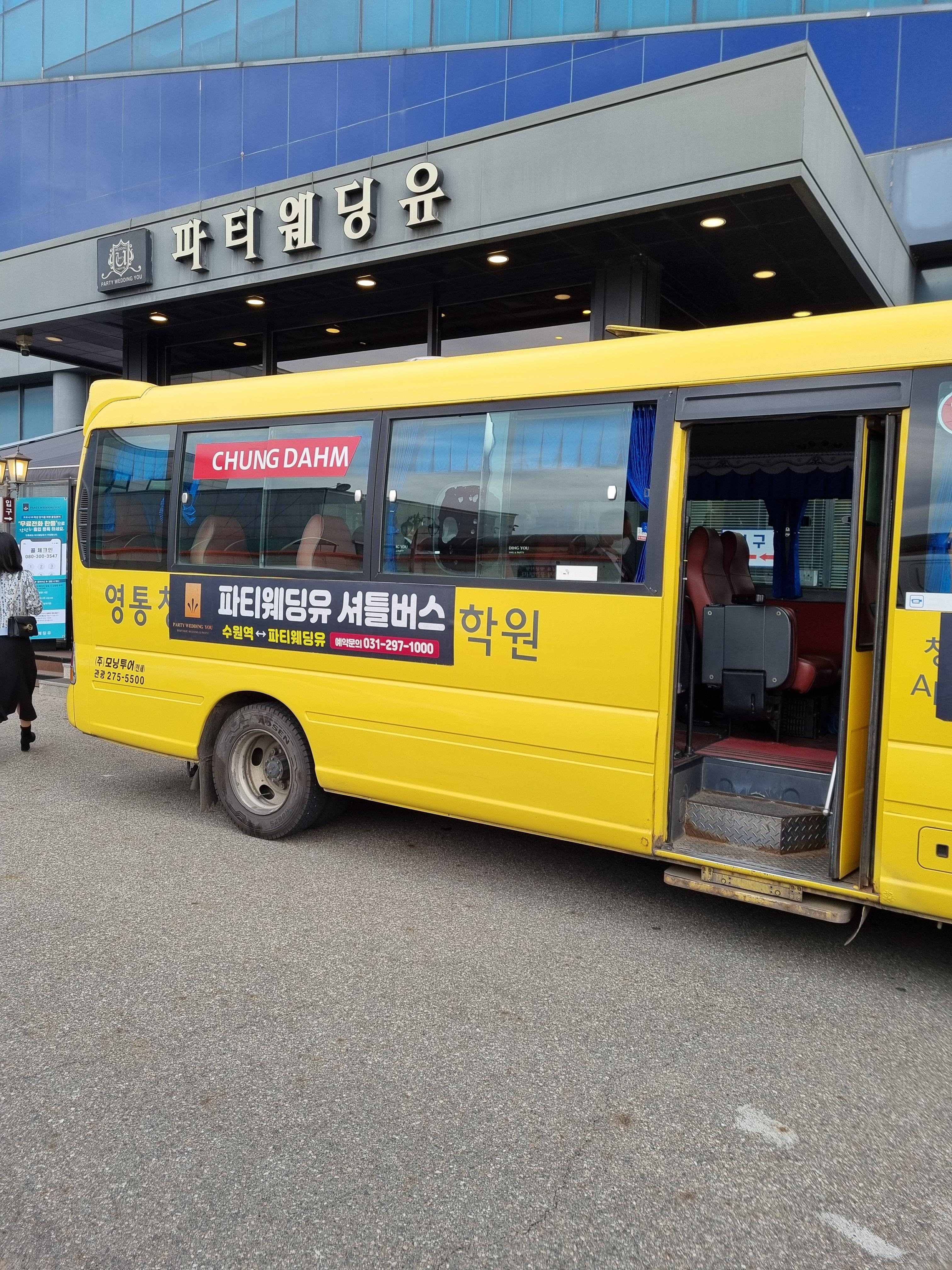 수원역에서 웨딩홀까지 셔틀버스 수시로 운행 중이니
