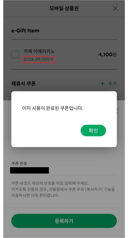멀쩡한 기프티콘 1개 날아가고, 기분 찝찝한 채 하루를 망쳤었죠.