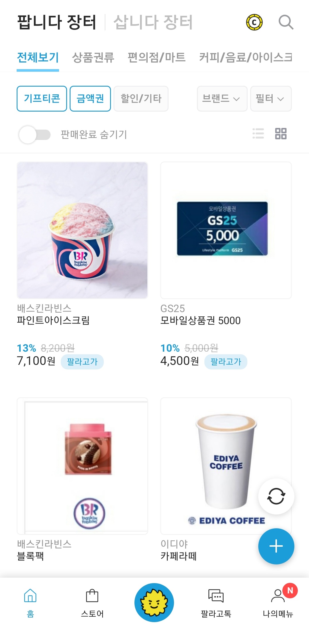 기프티콘 외에도 상품권, 구글 기프트카드, 문화상품권, 영화 관람권 등 거래가 가능합니다.
