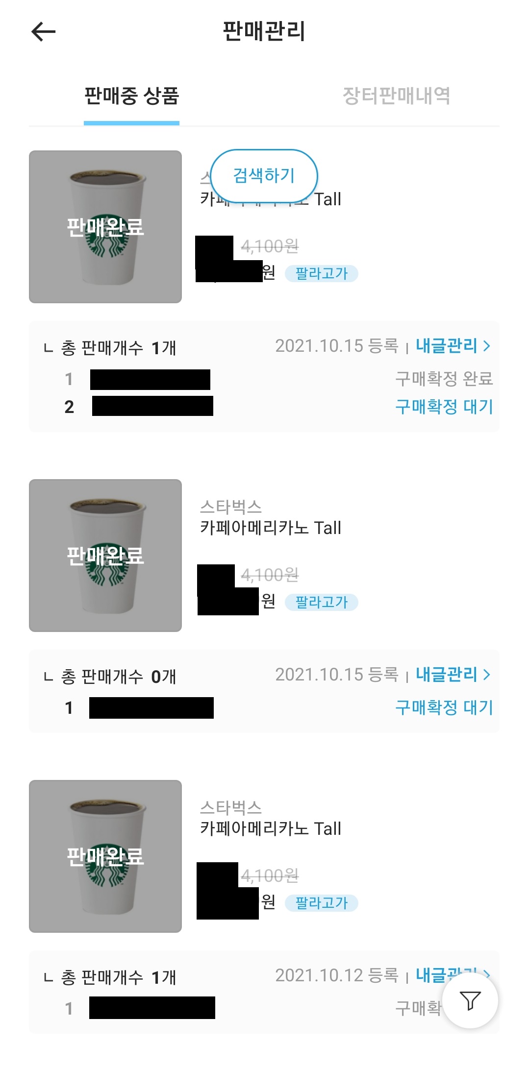팔라고에서 물품을 어떻게 파는지 스타벅스 아메리카노를 예시로 설명하겠습니다. (위 사진 참고)
