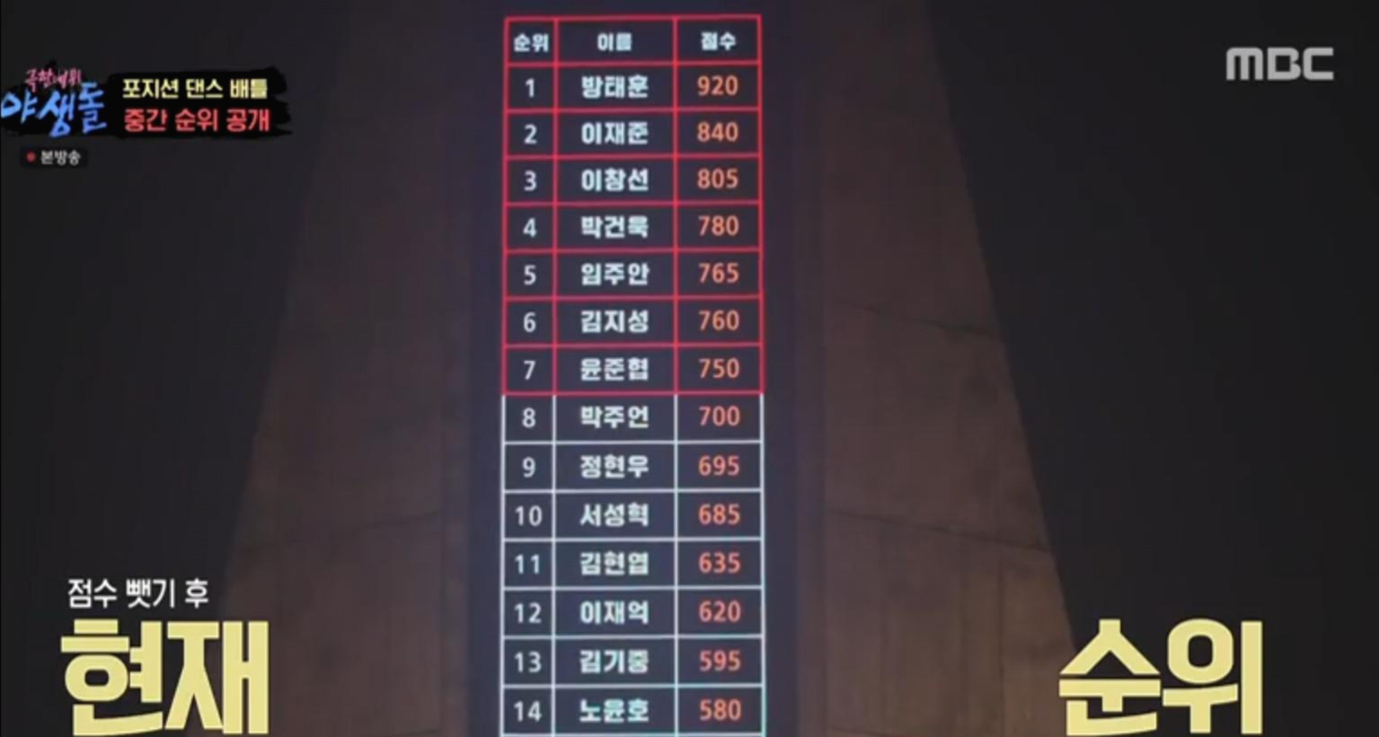 점수가 워낙 차이나 어느 정도 예상이 되는 탈락자였지만