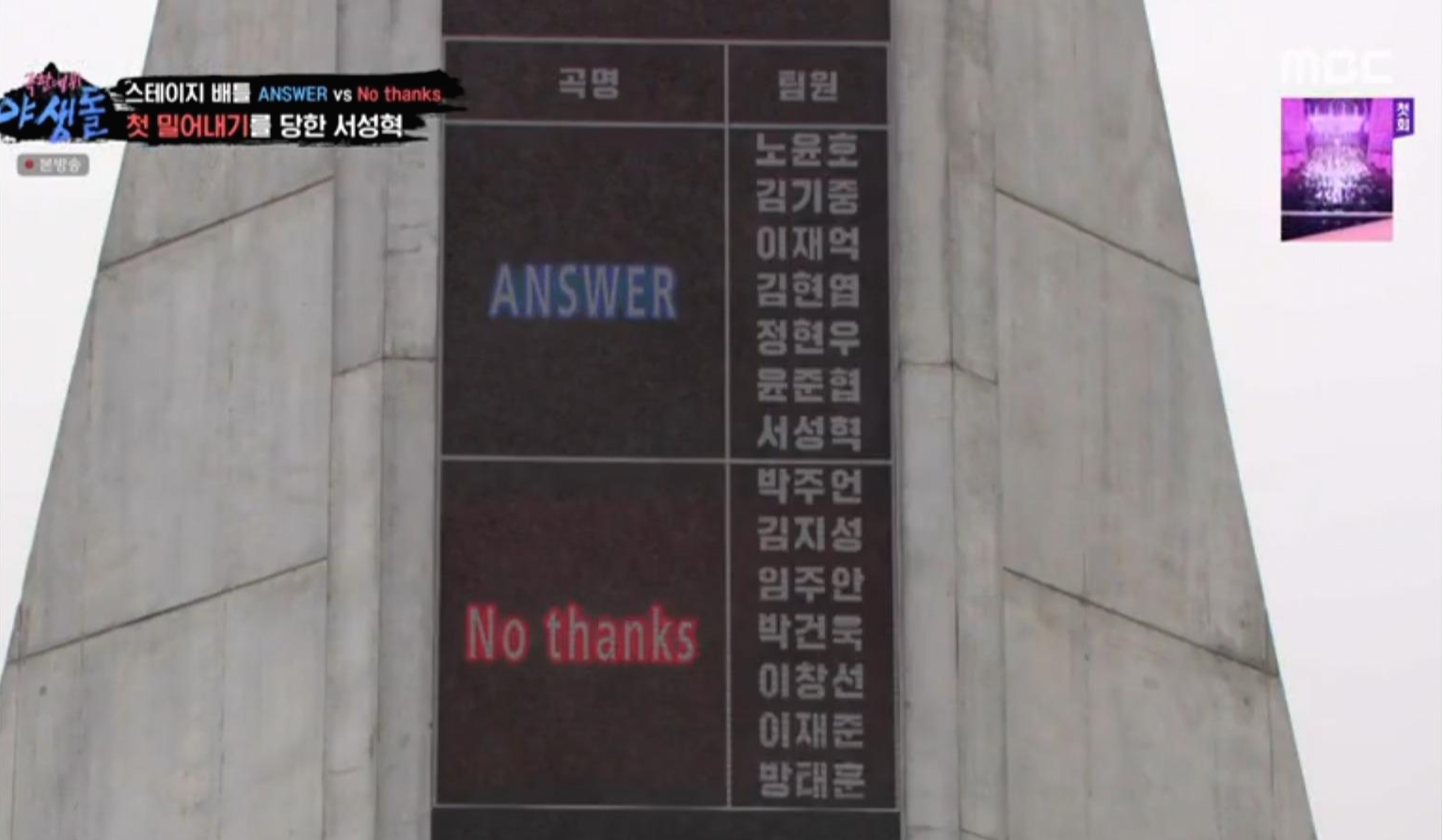 이때까지 순위 1위였던 방태훈 씨는 NO THANKS 팀으로 가