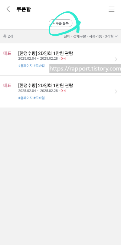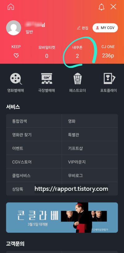 영화 관람권을 사용하려면 먼저 관람권 등록을 해야 합니다.
