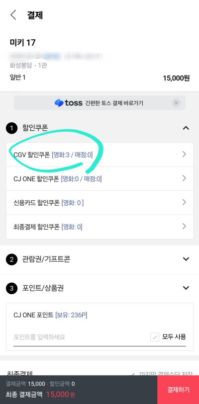 7. 할인 쿠폰을 적용하면 CGV 관람권으로