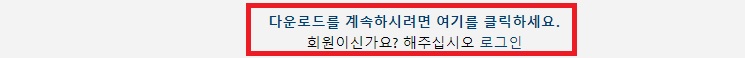 15초 정도 기다리시면 아래 사진처럼 다운로드를 계속하시려면 여기를 클릭하세요.라는 문구가 뜹니다.