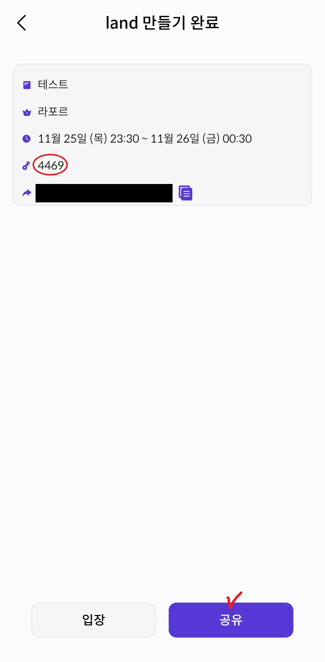 비공개로 만들면 입장 코드와 링크를 줍니다.