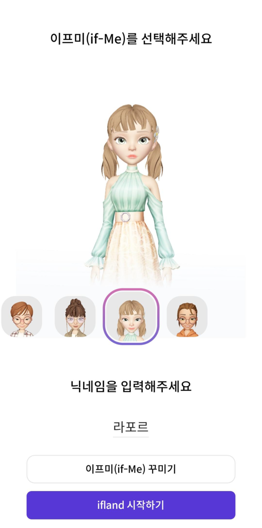 게임을 시작해 가입을 하면 이프미(if-Me)라고 아바타 만들기가 나와요.
