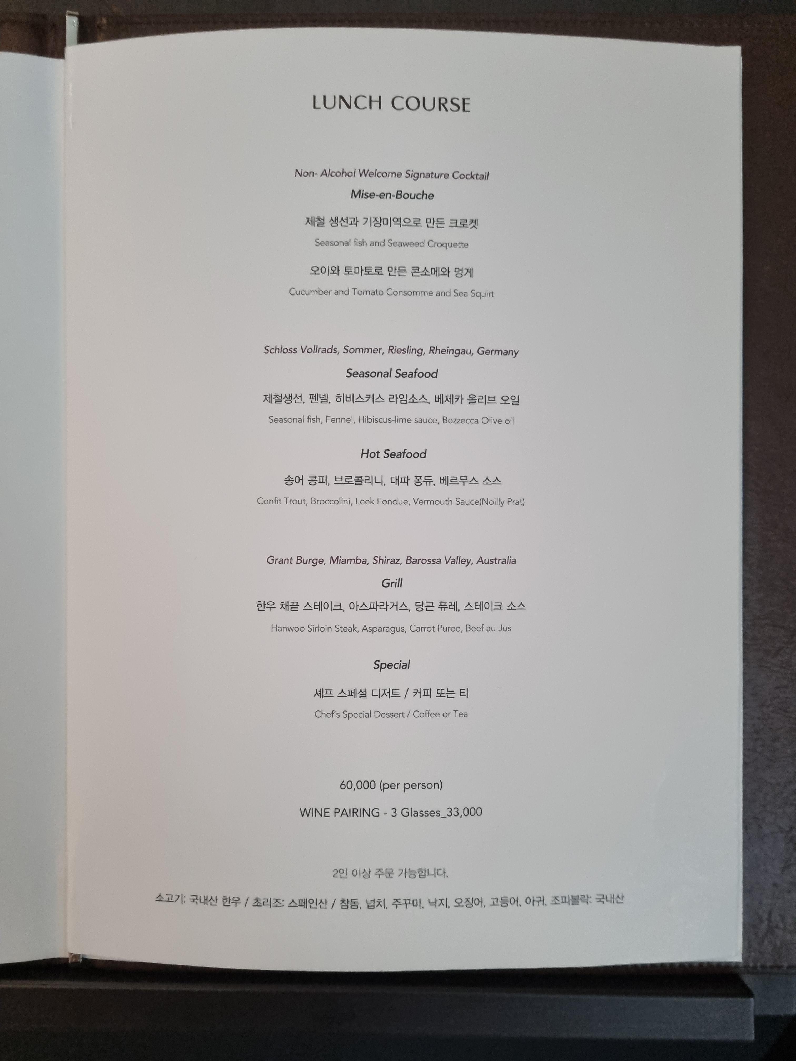 런치 코스로 식사했습니다~ 인당 6만 원!