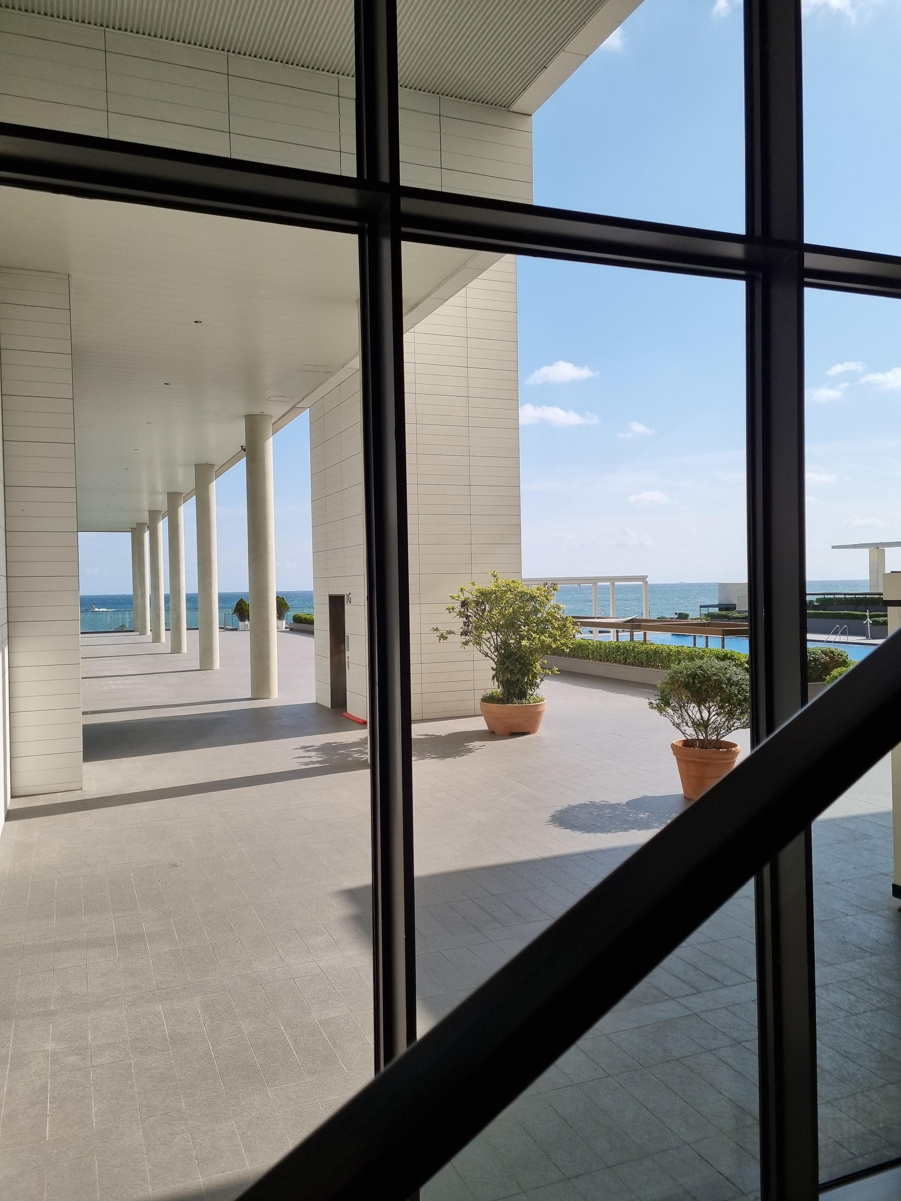 한 층 위로 올라가면 객실도 보이고 유리창으로 막혀있지 않은 바다 뷰를 볼 수 있어요.