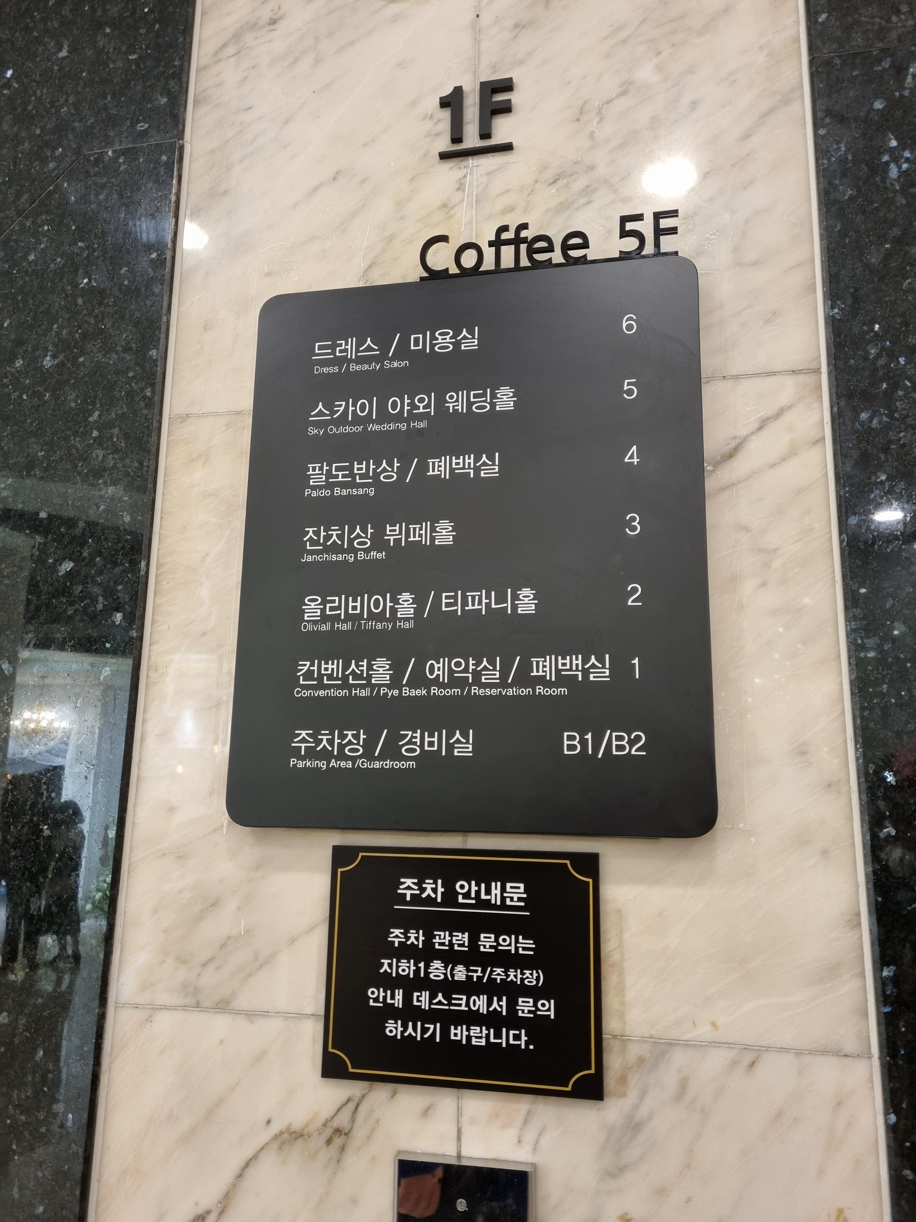1층은 컨벤션 홀, 예약실, 폐백실이 있어요~